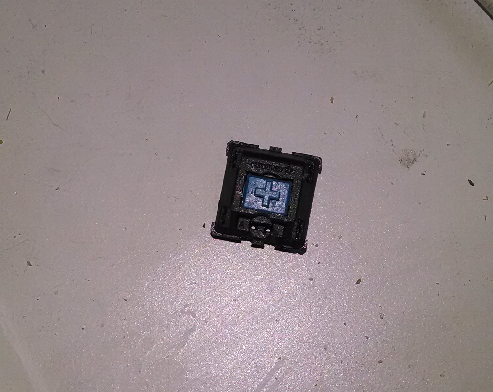 Much like the human body, where they can take some “extra” tendons you have laying around in your body, and fix your ACL, there are plenty of “extra” keys on the dasKeyboard I could use to replace my broken key.  In this case, I used the right Windows key, which I doubt I have ever used (I use ALT-ESC if I want to bring up the start menu with a keystroke).  When you pull the keycap off of the key, you find the switch mechanism: