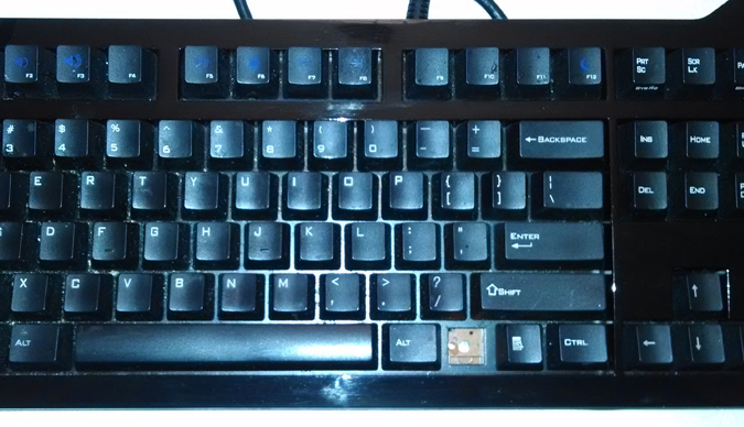The finished product.  I’ve opened a case with dasKeyboard to find out if I can buy a new key, but if not, or it is too expensive, I will probably solder the broken key into the hole just to cover the spot.